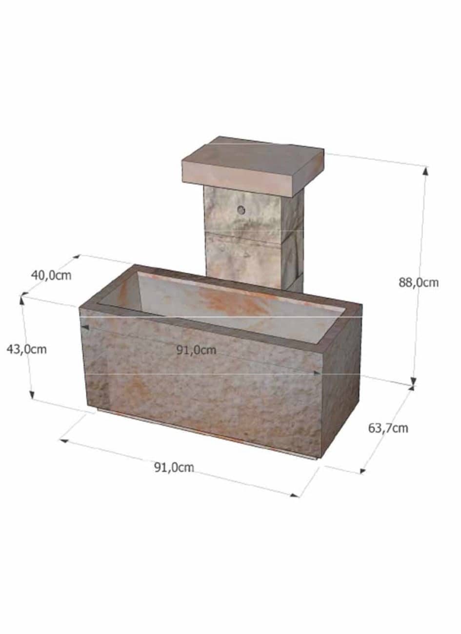Petite fontaine de jardin. Hauteur 90 cm. Tres pratique pour raccorder un tuyau d’arrosage, stocker temportairement de l’eau ou faire du nettoyage. Livré avec robinet colvert