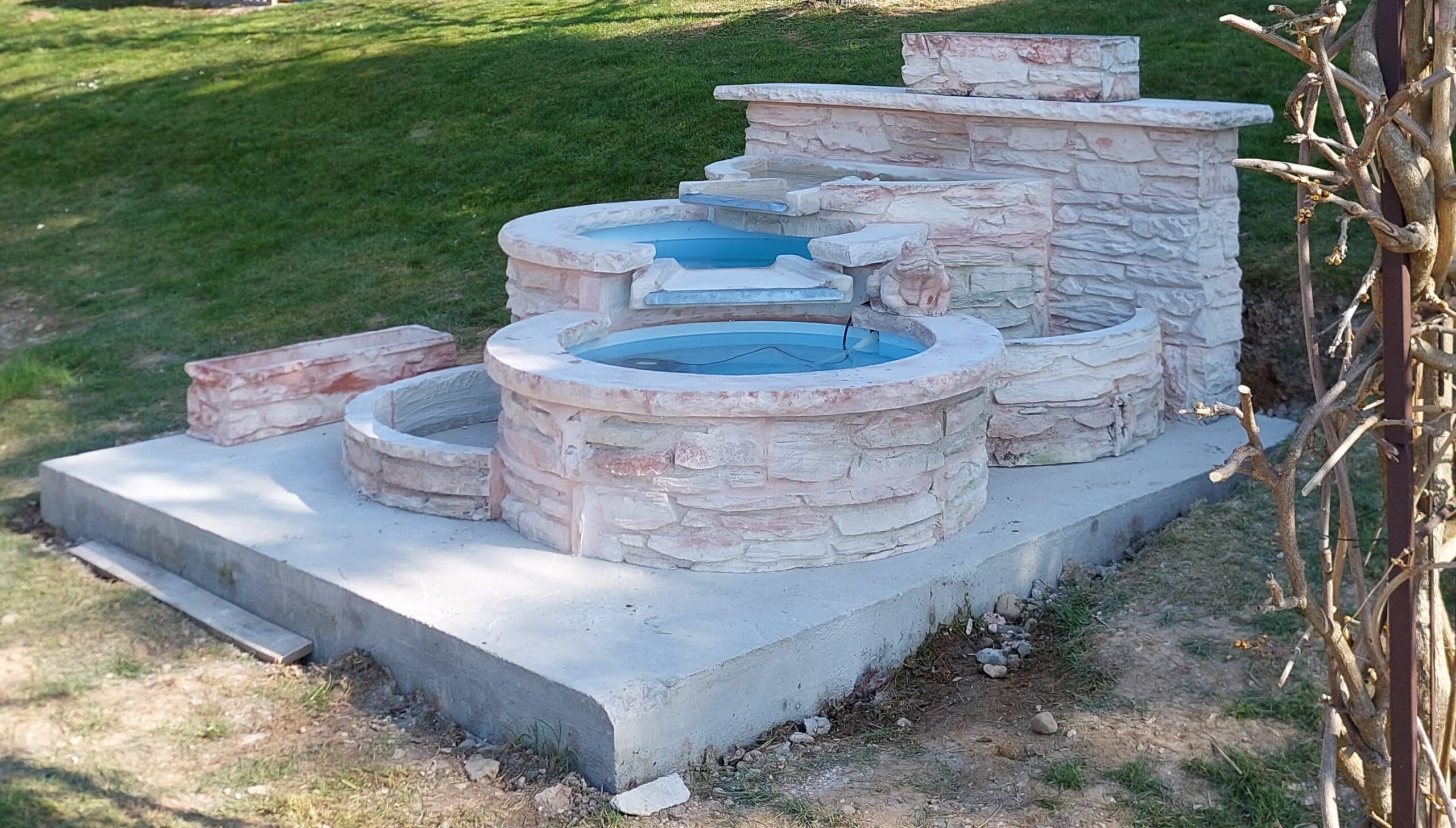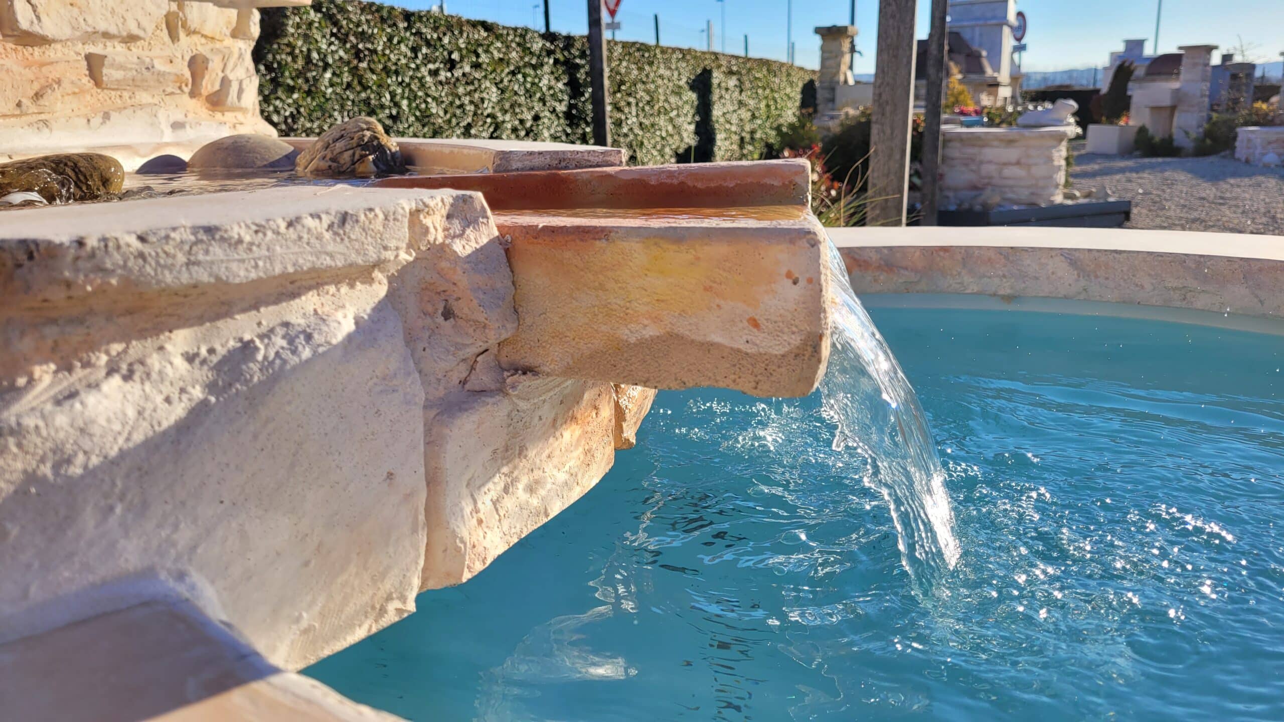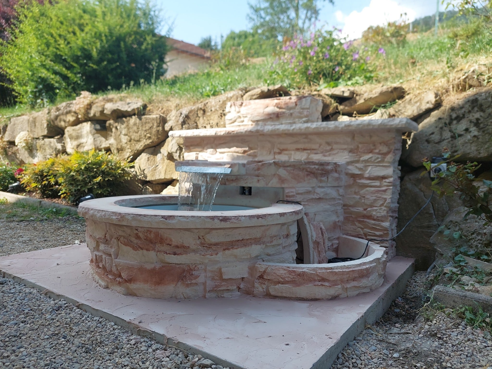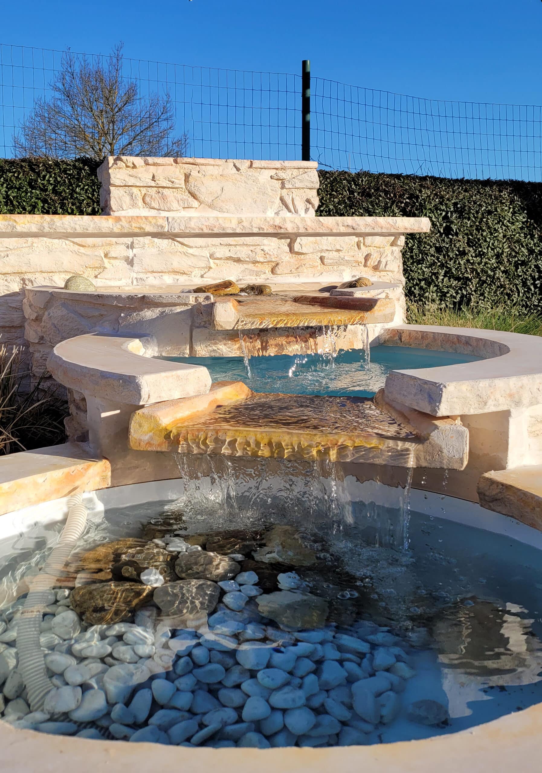 Détendez-vous en écoutant couler la cascade de votre fontaine de jardin en pierre reconstituée !