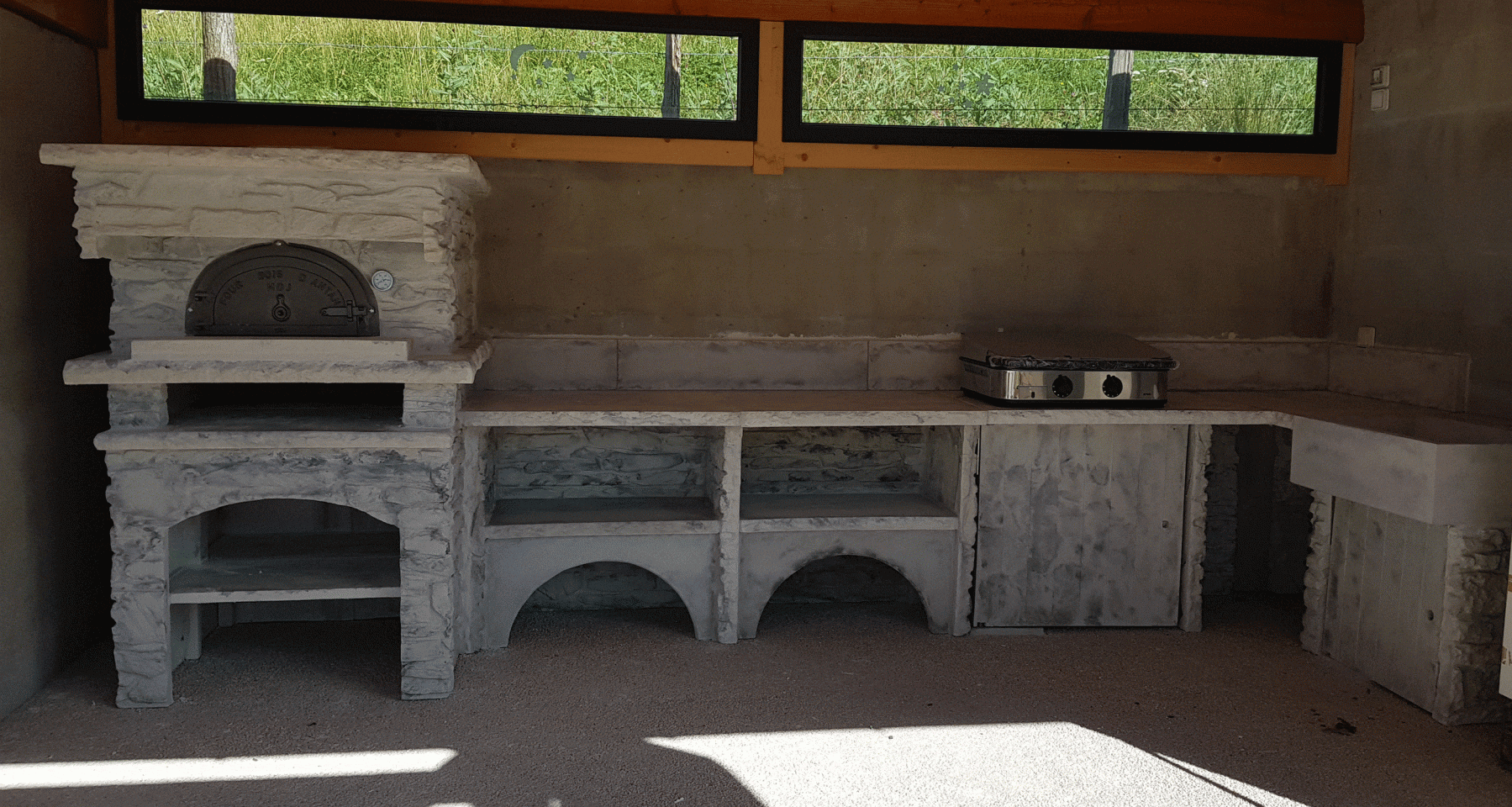 Le four Malissard toit plat peut s’intégrer dans des espaces qui imposent une hauteur maximale. Dans ce projet nous avons respecté la hauteur des fenêtres.